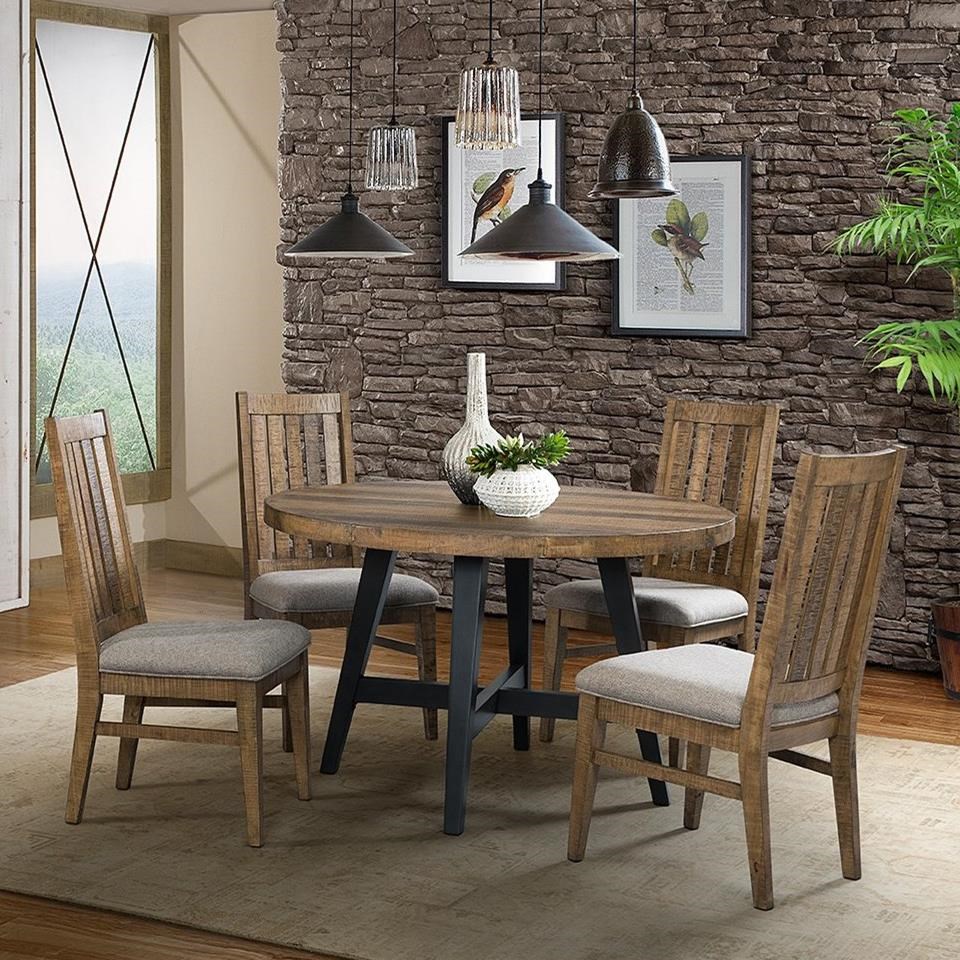 4.2 out of 5 stars. The 5 piece set includes 4 metal padded folding chairs and a square folding table. Contact us for the most current availability on this product. The rectangle dining table features a trestle style base, perfecting the rustic, farmhouse style. This set features a round dining table and four dining chairs.